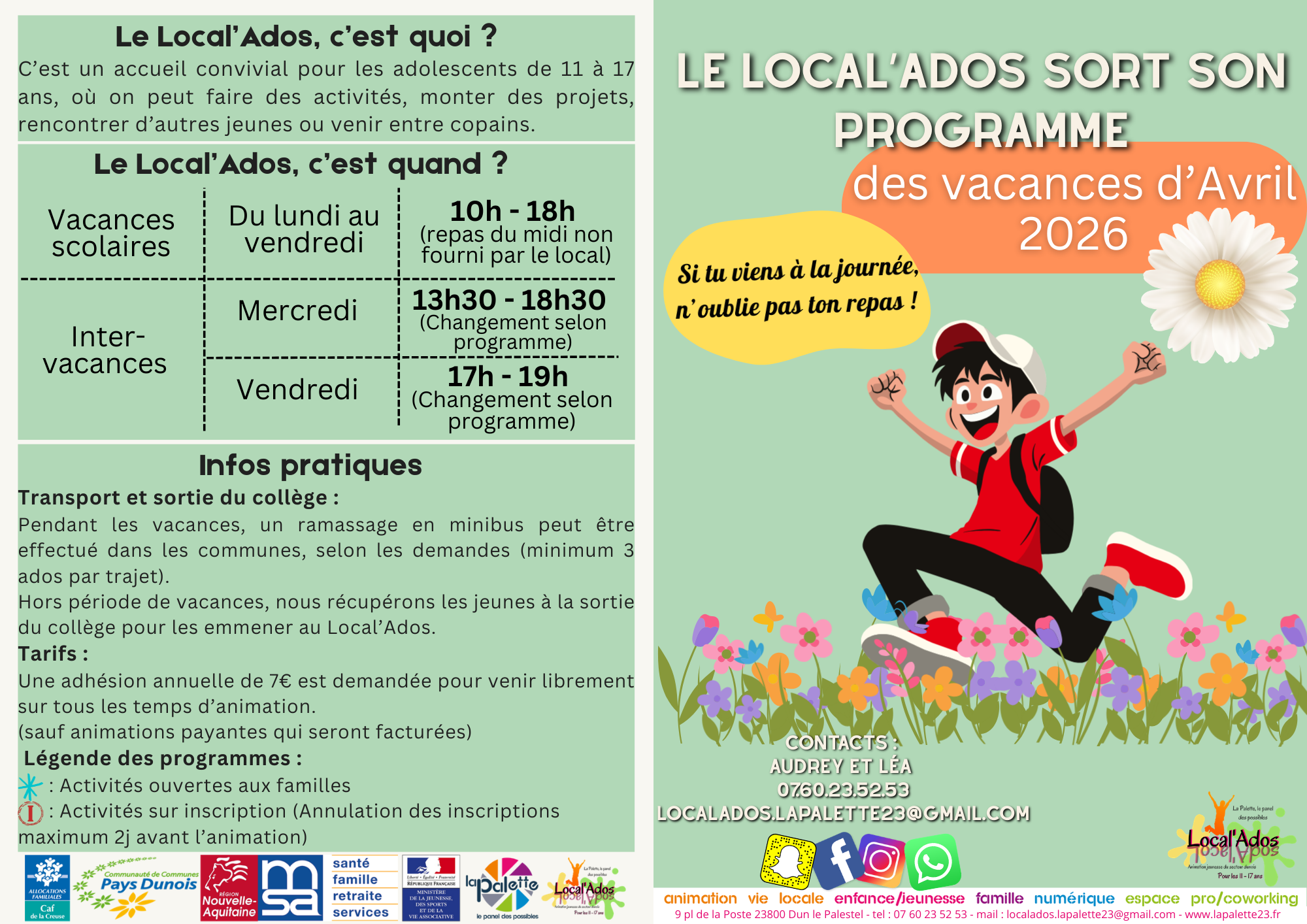 Local'Ados Programme Local’Ados – Vac d’avril 2026 18 mars 2026 LaPalette Local’Ados Télécharger le programme complet : Le Local’Ados Programme – Vac Avril 2026