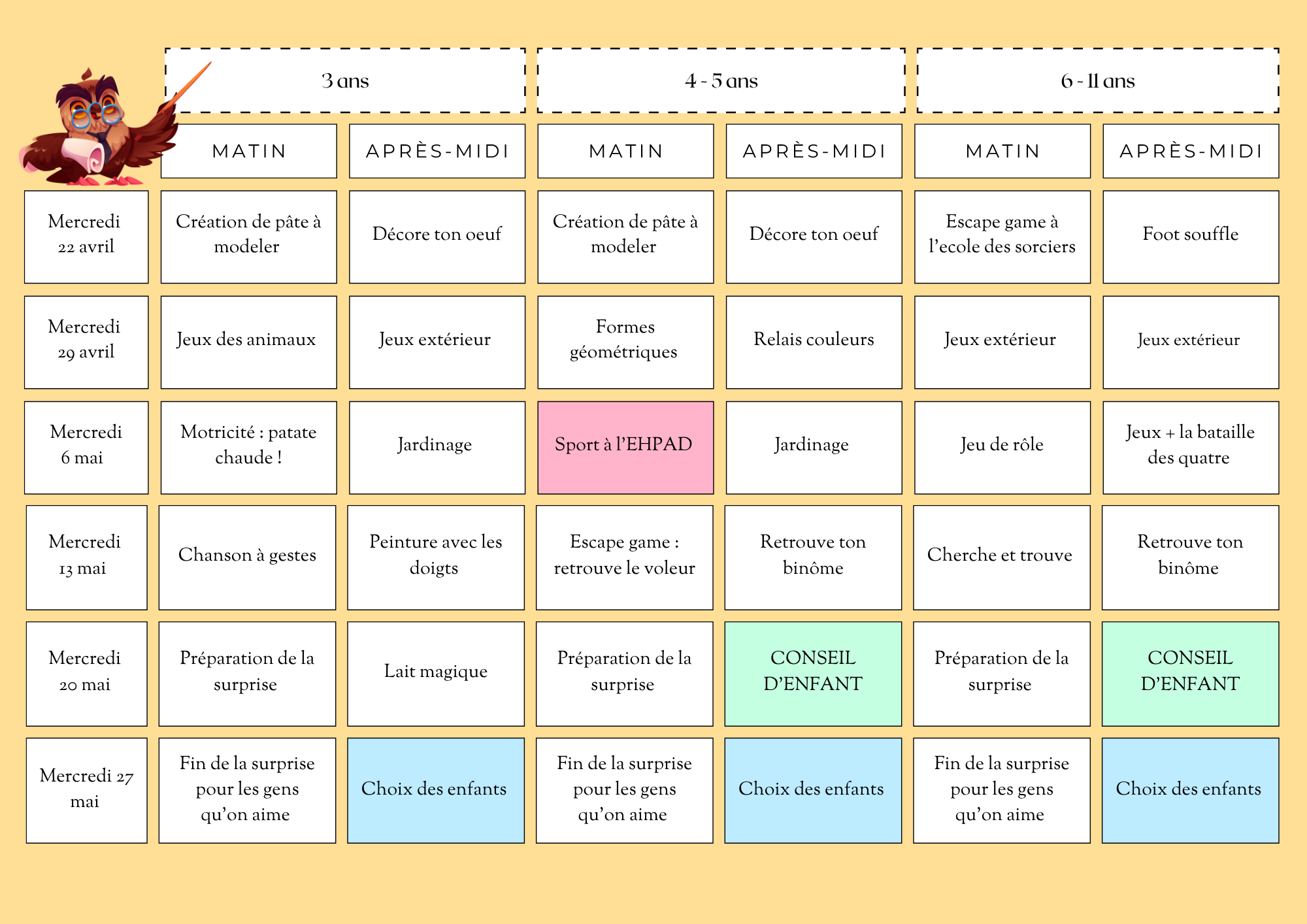 Programme de la Cabane Magique – Mercredis d’avril – mai – juin –